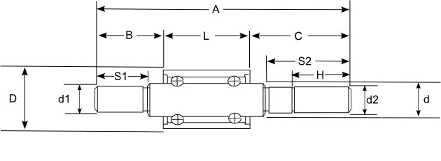 No. Parte d1 Grueso del Eje Sup. d2 Grueso del Eje Inf. L Alto de Cuerpo D Ancho de Cuerpo C larg. eje Sup. B Larg. eje Inf. Acción
